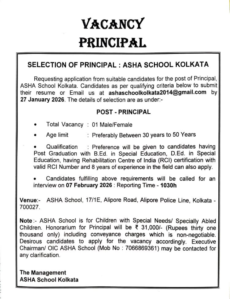 Asha School Kolkata was established on 01 Sep 1992 to provide education, care and rehabilitation to the differently abled children of defence personnel and civilians. The School is being run under the arrangements of HQ Eastern Command, Army Wives Welfare Association (EC AWWA). It is located at Command Hospital, Eastern Command (CH EC), Complex Alipore, Kolkata.